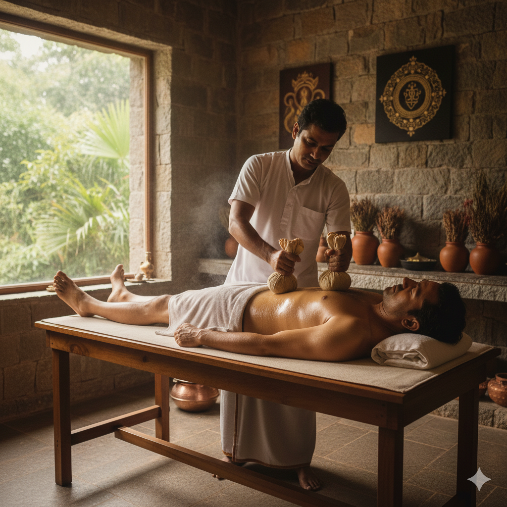 Kizhi, a cornerstone of traditional Ayurvedic treatment, refers to a localized fomentation therapy where herbal boluses (pottlies) are heated and applied to the body. This therapeutic technique is formally mentioned in the Charaka Samhita (Chikitsasthana 28:127) and is renowned for its ability to alleviate pain, reduce inflammation, and rejuvenate bodily tissues.